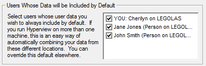 You can specify the users whose data you wish to include in the place where it is displayed (e.g. in the Error Browser), but you can also set a default here by checking the boxes next to the names of users whose data you wish to always include. Their names will only show up in the box if they have already registered for data sharing. Whatever you specify here, you can override it in the more specific location (like the Error Browser or Bookmark Manager).